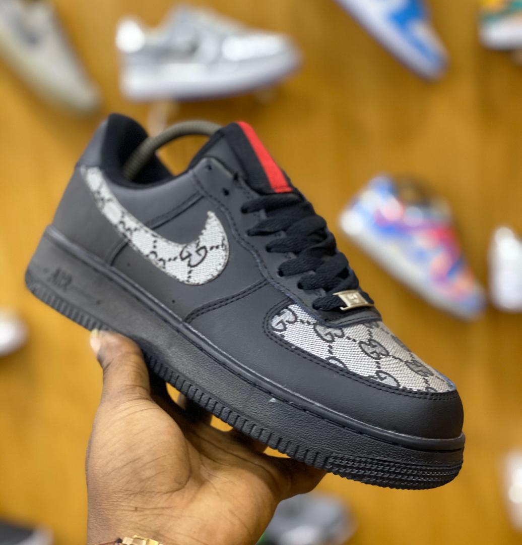 Gucci patterns are made of leather. White nike air force 1 with gucci print over swoosh. Custom gucci leather black air force 1 . Vans sneakers, custom sneakers, custom shoes, gucci nike, custom air force 1. Artwork fully crack/scratch proofed & resistant, .